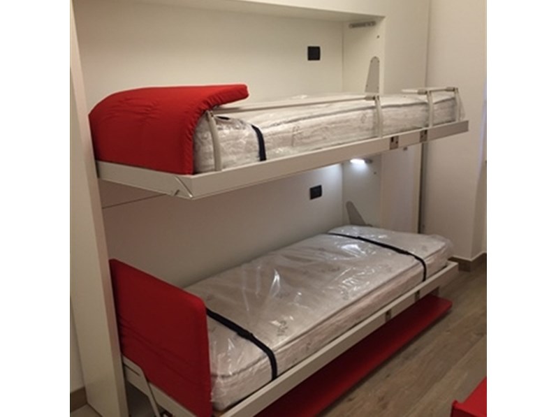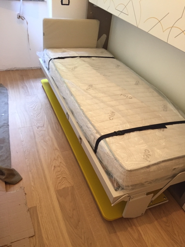 Caratteristiche: è una soluzione davvero insolita, basata su un sistema con meccanismo elettrico che permette al letto di salire e scendere YoYo di Spinelli è un prototipo non ancora in produzione: su www.fratellispinelli.it trovate molte altre proposte "a scomparsa". Armadiatura con scrivania, gruppo TV, Console giochi, Nuovoliolà CLEI con materasso. Nelle camerette per ragazzi si verifica spesso di aver bisogno di spazio per il gioco e per lo studio e questa tipologia di letti risolvono il problema.